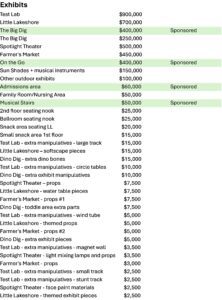 Meeting the diverse learning needs of children means creating exhibits that embrace multi-sensory learning (visual, auditory, tactile, kinesthetic). This allows children to learn and explore in a way that is most comfortable to them, while also promoting well-rounded development. All exhibits also need to be accessible. Exhibit content will include STEM based activities and some of the exhibits currently in the works are- The Big Dig (guests will become paleontologists in a blend of large motor play, problems solving challenges, and piecing together prehistoric puzzles); experimentation (Test Lab – an open-ended collection of exhibits with motion, speed, air, gravity and other forces); social-dramatic (Spotlight Theater – imaginative play takes center stage with backstage fun, costumes and props, and face paint – this space emphasizes early literacy practices); interactive experiences (On the Go – the area around CKM is a transportation hub – trains, barges and trucks are literally right outside our doors and kids can get behind the wheel of whatever vehicle they choose while learning about the area’s history and industry) and The New and Improved Farmer’s Market will add garden furrows, a tractor and other agriculture themed experiences; all new exhibits create opportunities for family engagement and cooperative play!